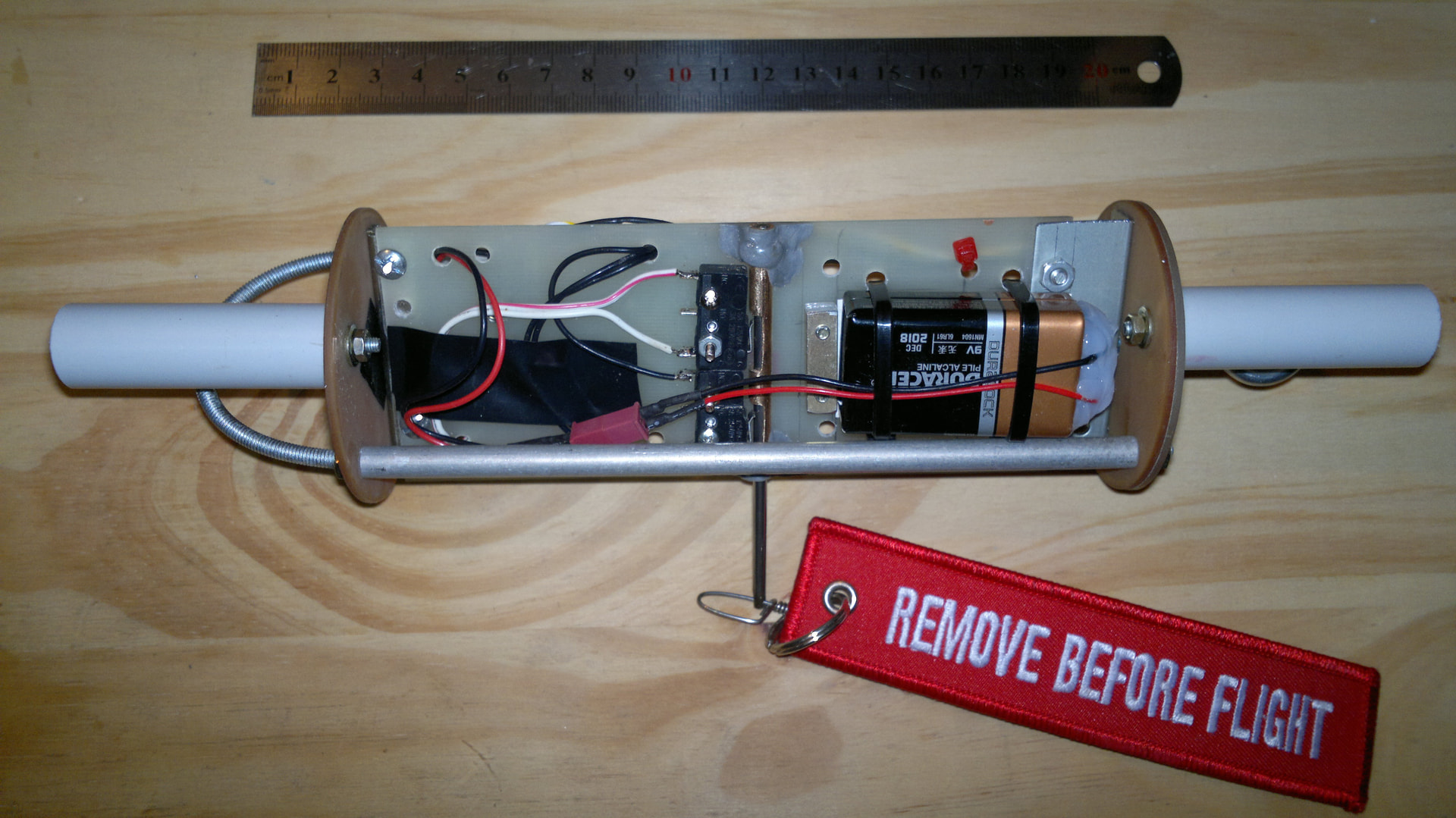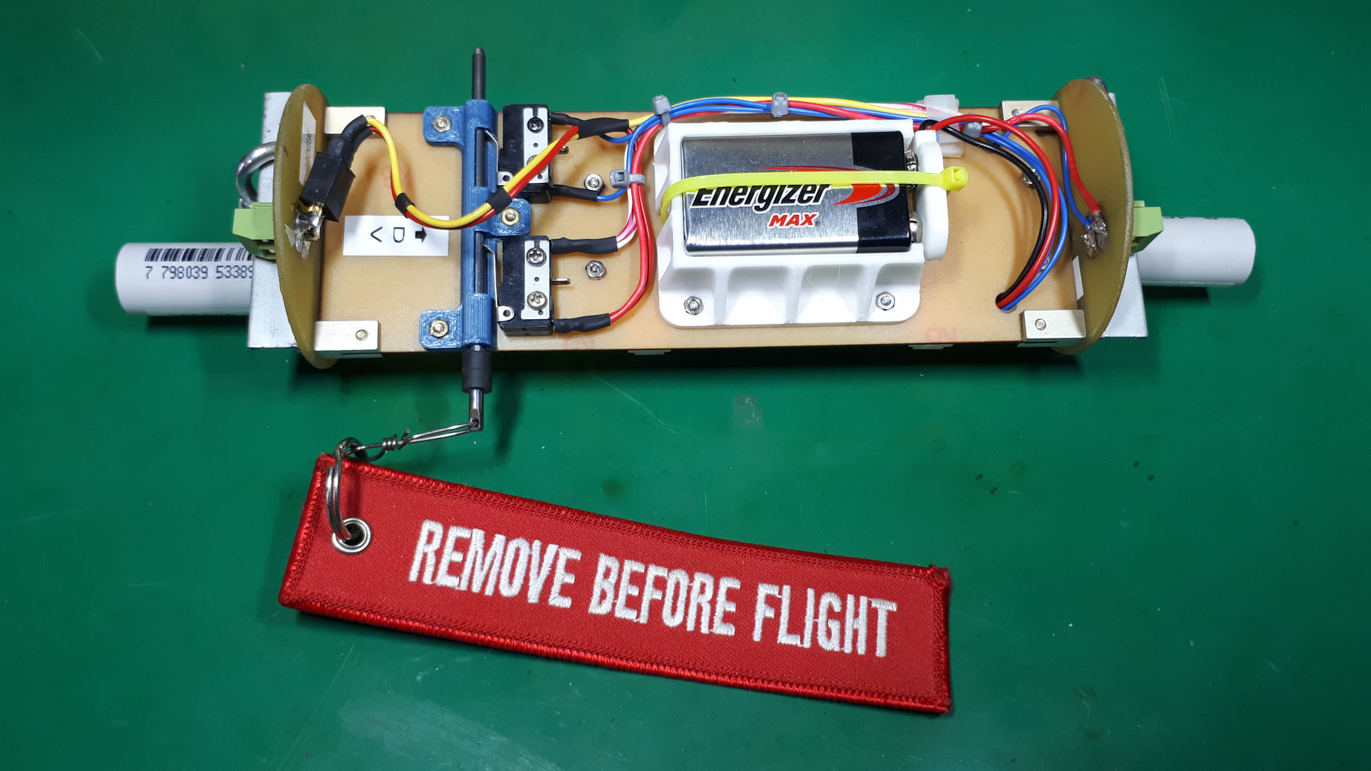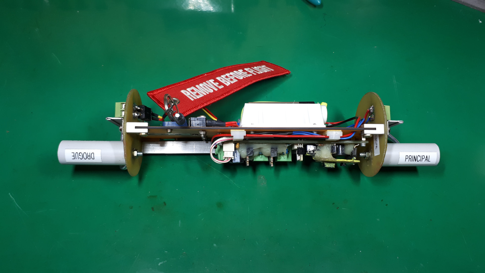 De esta forma al remover el pin primero se libera el microswitch que corresponde al encendido del altímetro y luego se habilita la continuidad de la línea que alimenta los ignitores.